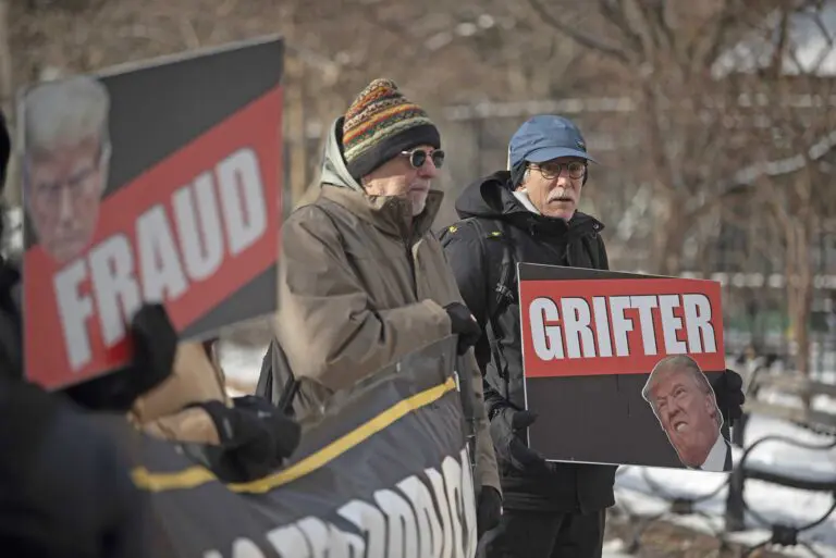 The march moved west and north from the park, taking the streets though remaining peaceful. Trailing at the outer edges were twin lines of NYPD officers, while a handful of scooter-riding police kept their distance from the front. While most New Yorkers cheered the protests on, several took to their windows to jeer or hurl insults. Some screamed “Trump 2025!” while others waved American or Israeli flags. The crowd stretched four or five blocks in length and was generally numbered in the thousands — similar to protests in Washington, D.C., on Saturday but numbers that pale in comparison to the massive turnout in 2017, at the start of Trump’s first term.