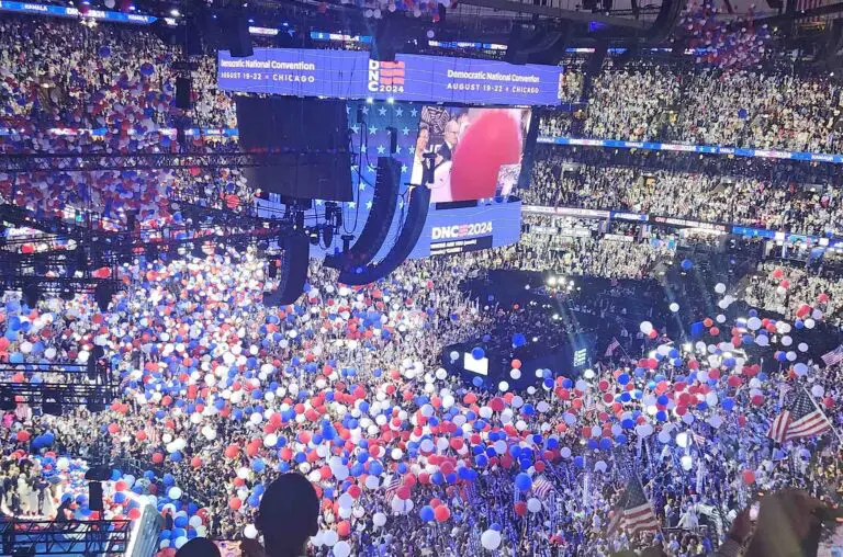 Celebrations were everywhere at the Democratic National Convention, the first physical gathering in eight years — parties, afterparties, buffet breakfasts, caucus meetings, and all the other giddy rendezvous. The vice president and her running mate, Minnesota governor Tim Walz, were the toast of Chicago, and most intraparty dissent had been tamped down, although the Uncommitted Movement had demanded a Palestinian speaker at the convention and the DNC had rebuffed them. Beyond the security perimeter, the pro-Palestinian marches were sizable but not as enormous as billed, and disruptions were minimal. It was not 1968 out there.