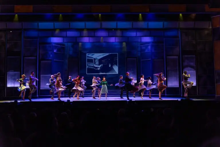 At The Muny, scale changes the job. With around 11,000 seats, the space forces every movement choice to travel with clarity. At Music Theatre Wichita, a different kind of discipline takes over. The work has to hold inside a fast-moving production culture where timing and consistency matter every night.