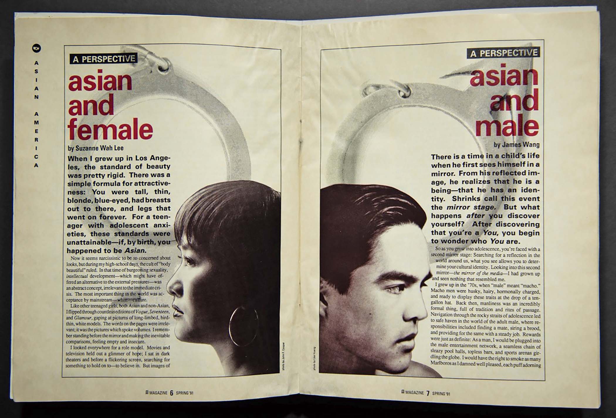 While considering this question of audience, I appreciated the exhibition’s inclusion of a before-and-after to this X era of magazines. The opening display houses “Asian American Movement” periodicals from the late ’60s to the ’70s, such as Coming Together, Gidra, and Asian Americans for Action, all of which embody the political, anti-colonial, radical, and community-focused values that defined this movement. And a companion exhibition proposes a legacy of sorts, with “three new directions for magazine making today” — Hotam, 4N, te magazine — whose highbrow content and aesthetics are palatable to any cosmopolitan-minded reader for whom notions of Asianness in the culture are as visible — or invisible — as ever. ❖