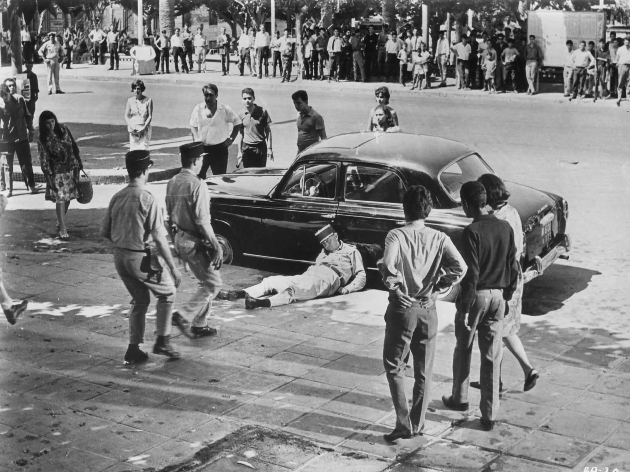 We follow both sides of the combat — the uprising Casbah natives and the merciless if disconcerted French army — from 1954’s initiation of the rebellion to the official French victory, in 1957, over the National Liberation Front. It was a Pyrrhic victory, as the harrowing, riot-mad coda makes clear — the terrorist organization may have been rooted out, but the Algerian people still resisted occupation. Hard-edged he may be, but Pontecorvo cannot be called unromantic: Starting with the grifter-turned-assassin-turned-movement-leader Ali La Pointe (Brahim Haggiag), the actors playing the Arab seditionists were all chosen for their soulful beauty. (Not, it’s safe to say, for their chops; nearly all of their dialogue is post-dubbed, another factor in the movie’s on-the-fly affect.) Lizard-eyed ramrod Colonel Mathieu (Jean Martin, the only pro actor in the cast) is sympathetic insofar as he affects admiration for his antagonists (including co-producer Saadi Yacef, who essentially plays his FLN-leader self after writing the book on which the film was based) as civilian neighborhoods are obliterated into rubble, and a barbed-wire wall with armed checkpoints (!) is erected between Algiers’s Muslim and French quarters. French government officials complained that the film’s politics were anything but “fair and balanced,” and they weren’t wrong—it’s a revolt anthem, mature enough to document violative extremes on the Algerian side but never surrendering its moral rectitude.